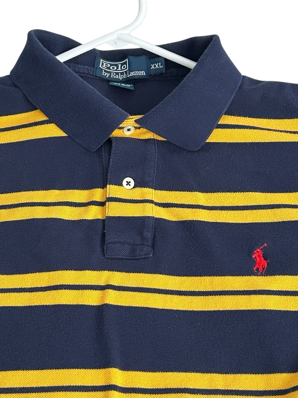 Ralph Lauren Polo Mens Polo Shirt XXL Blue Yellow Stripes Red Pony Charlie Brown style