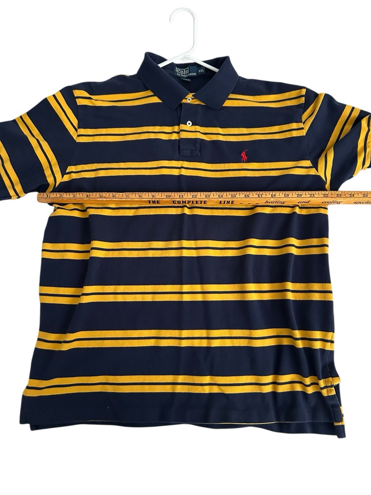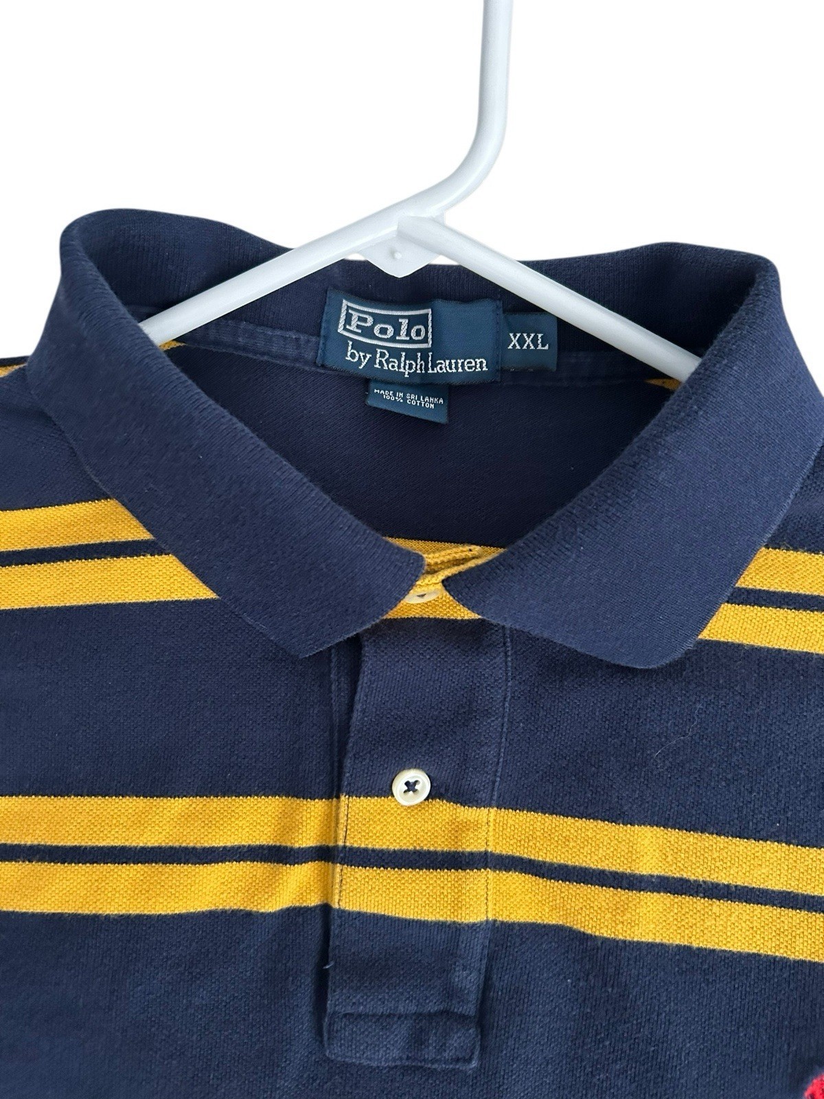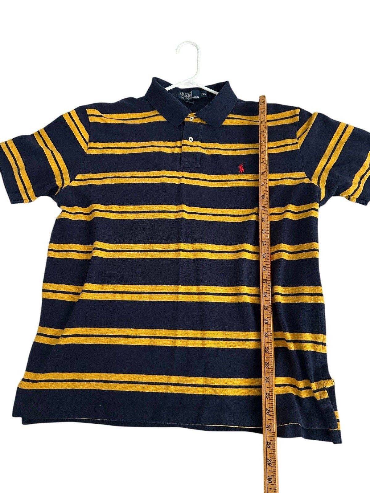 - Ralph Lauren Polo Mens Polo Shirt XXL Blue Yellow Stripes Red Pony Charlie Brown