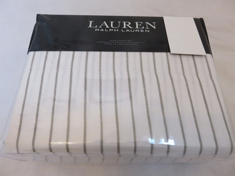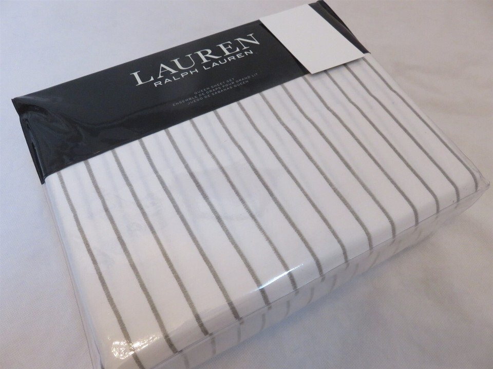 Ralph Lauren Spencer Stripe Sateen 4P queen sheet set Grey $170 Ralph Lauren Spencer Stripe Sateen 4P queen sheet set brand new, first quality in original packaging includes queen flat, 1 queen fitted and 2 standard pillowcases flat 94 by 102 fitted 60 by 80 by 15 pillowcases 20 by 32 230 thread count color is grey (on white background) *buy with confidence, this item is not a department store return or store display with flaws offered by many of "lower price" sellers* ADDITIONAL DETAILS Customer service and communication- I strive to provide an excellent products and service and do my best to provide a detailed product listing. I am happy to answer questions or provide additional photos to help my buyers make a good purchase decision. On the rare occasion where a listing or shipping error occurs, I will do my best to resolve any issues as quickly as possible. Buyers must contact me within 5 days of receipt to advise of an issue or the intent to return. All communication is through message system. Returns- Items are accepted for return within 30 days of receipt. They must be in brand new and unopened condition in original packaging and with all inserts and any security loops intact. Bedding is a personal item. Due to the nature of bedding, any items that are opened,unfolded or placed on the bed or used/laundered are no longer in original condition and are ineligible for a return. Authorized returns may be assessed a 15% restocking fee. Returns for color, fit or style are considered buyers remorse reasons. I can't be responsible for how color appears on your computer monitor so ask questions if you are trying to color match. Return shipping is the responsibility of the buyer. Credit issued will be less the cost of shipping. Shipping Details- Your order with usually be shipped within one business day via the best eligible shipping method. I will ship to the address in paypal. Please modify the address prior to payment if you wish the item to go to a different address. If you need expedited shipping please contact me for options/costs. Payment- I accept paypal. Payment should be received within 3 business days of auction close. If you need to pay in another way or need more time for payment, please message me for options. International Buyers Please Note: Import duties, taxes and charges are not included in the item price or shipping charges. These charges are the buyers responsibility. Please check with your country's customs office to determine what these additional costs will be prior to bidding/buying. These charges are normally collected by the delivering freight (shipping) company or when you pick the item up. Do not confuse them for additional shipping charges. We do not mark merchandise values below value or mark items as gifts- US and International government regulations prohibit such behavior. Powered by SixBit's eCommerce Solution