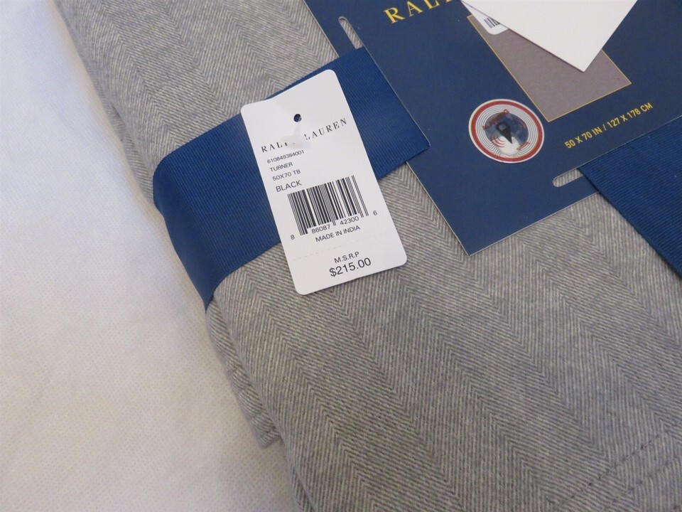 Ralph Lauren Turner Herringbone Throw Blanket Embroidered polo pony $215 Ralph Lauren Turner Throw Blanket - brand new first quality with tags, packaged with blue RL ribbon, no plastic packaging- retail store removed for display - measures 50 by 70 inches - 100% cotton, exclusive of decoration - large embroidered polo pony in corner - color is listed as black on tag but is really a grey - herringbone weave on one side, reversing to a dark grey plaid - retail price $215 *buy with confidence, this item is not a department store return or store display with flaws offered by many of "lower price" sellers* ADDITIONAL DETAILS Customer service and communication- I strive to provide an excellent products and service and do my best to provide a detailed product listing. I am happy to answer questions or provide additional photos to help my buyers make a good purchase decision. On the rare occasion where a listing or shipping error occurs, I will do my best to resolve any issues as quickly as possible. Buyers must contact me within 5 days of receipt to advise of an issue or the intent to return. All communication is through message system. Returns- Items are accepted for return within 30 days of receipt. They must be in brand new and unopened condition in original packaging and with all inserts and any security loops intact. Bedding is a personal item. Due to the nature of bedding, any items that are opened,unfolded or placed on the bed or used/laundered are no longer in original condition and are ineligible for a return. Authorized returns may be assessed a 15% restocking fee. Returns for color, fit or style are considered buyers remorse reasons. I can't be responsible for how color appears on your computer monitor so ask questions if you are trying to color match. Return shipping is the responsibility of the buyer. Credit issued will be less the cost of shipping. Shipping Details- Your order with usually be shipped within one business day via the best eligible shipping method. I will ship to the address in paypal. Please modify the address prior to payment if you wish the item to go to a different address. If you need expedited shipping please contact me for options/costs. Payment- I accept paypal. Payment should be received within 3 business days of auction close. If you need to pay in another way or need more time for payment, please message me for options. International Buyers Please Note: Import duties, taxes and charges are not included in the item price or shipping charges. These charges are the buyers responsibility. Please check with your country's customs office to determine what these additional costs will be prior to bidding/buying. These charges are normally collected by the delivering freight (shipping) company or when you pick the item up. Do not confuse them for additional shipping charges. We do not mark merchandise values below value or mark items as gifts- US and International government regulations prohibit such behavior. Powered by SixBit's eCommerce Solution