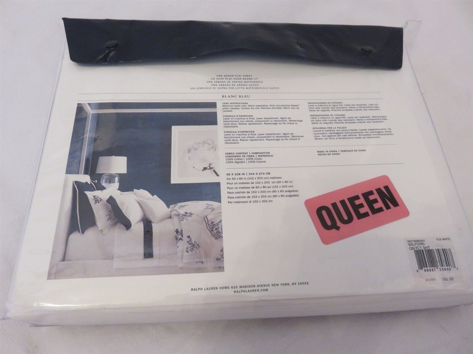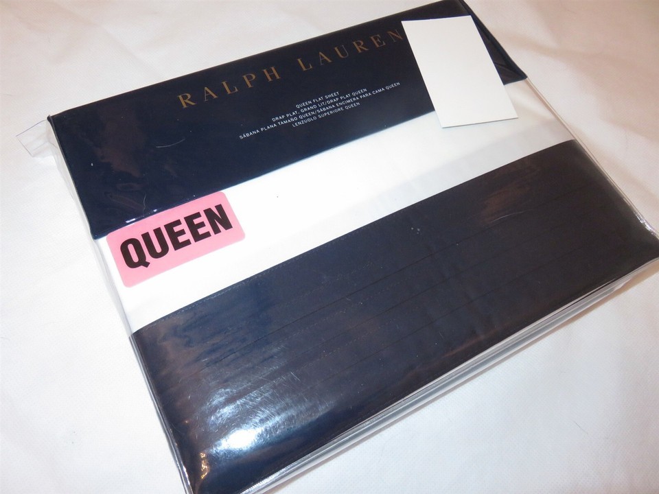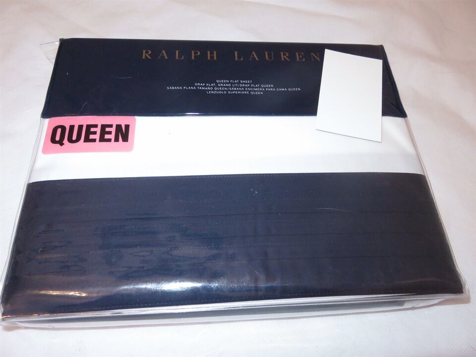 Ralph Lauren Wilford Blanc Bleau Queen Flat Sheet Tuxedo white navy Ralph Lauren Wilford Blanc Bleu Queen Flat sheet brand new first quality in original packaging measures 96 by 108 inches color is listed as tuxedo white body) cuff is a dark navy Cuff measures approximately 3.5 inches and is pleated 100% cotton retail price $185 See my Blanc Bleu listings (duvet cover set and pillowcases) *buy with confidence, this item is not a department store return or store display with flaws offered by many of "lower price" sellers* ADDITIONAL DETAILS Customer service and communication- I strive to provide an excellent products and service and do my best to provide a detailed product listing. I am happy to answer questions or provide additional photos to help my buyers make a good purchase decision. On the rare occasion where a listing or shipping error occurs, I will do my best to resolve any issues as quickly as possible. Buyers must contact me within 5 days of receipt to advise of an issue or the intent to return. All communication is through message system. Returns- Items are accepted for return within 30 days of receipt. They must be in brand new and unopened condition in original packaging and with all inserts and any security loops intact. Bedding is a personal item. Due to the nature of bedding, any items that are opened,unfolded or placed on the bed or used/laundered are no longer in original condition and are ineligible for a return. Authorized returns may be assessed a 15% restocking fee. Returns for color, fit or style are considered buyers remorse reasons. I can't be responsible for how color appears on your computer monitor so ask questions if you are trying to color match. Return shipping is the responsibility of the buyer. Credit issued will be less the cost of shipping. Shipping Details- Your order with usually be shipped within one business day via the best eligible shipping method. I will ship to the address in paypal. Please modify the address prior to payment if you wish the item to go to a different address. If you need expedited shipping please contact me for options/costs. Payment- I accept paypal. Payment should be received within 3 business days of auction close. If you need to pay in another way or need more time for payment, please message me for options. International Buyers Please Note: Import duties, taxes and charges are not included in the item price or shipping charges. These charges are the buyers responsibility. Please check with your country's customs office to determine what these additional costs will be prior to bidding/buying. These charges are normally collected by the delivering freight (shipping) company or when you pick the item up. Do not confuse them for additional shipping charges. We do not mark merchandise values below value or mark items as gifts- US and International government regulations prohibit such behavior. Powered by SixBit's eCommerce Solution
