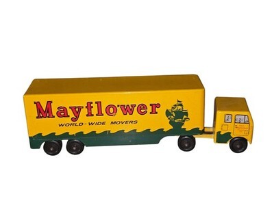 The Ralstoy Mayflower Moving Truck is a vintage diecast toy vehicle in the form of a tractor trailer in a vibrant yellow color. This collectible piece is perfect for toy and vintage vehicle enthusiasts, featuring the iconic Mayflower Moving logo and brand. The 8 1/4" size of the truck makes it a unique and eye-catching addition to any diecast collection. With its attention to detail and nostalgic charm, this toy truck is sure to be a standout piece for fans of vintage manufacture vehicles.