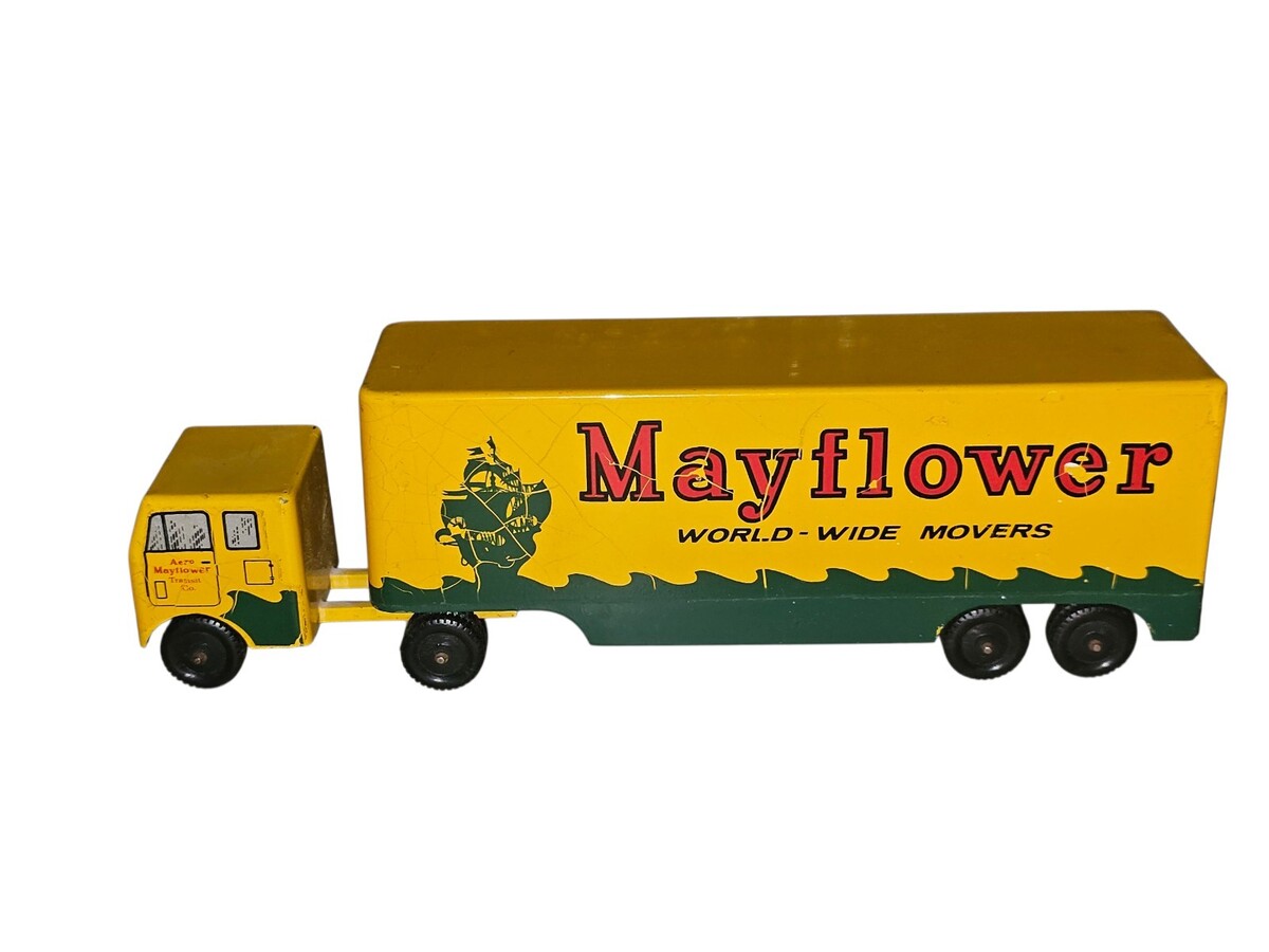 - Ralstoy Mayflower Moving Truck 8 1/4” Yellow Tractor Trailer Vintage