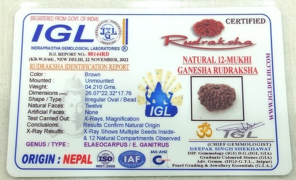 - Rare 12 Mukhi Ganesha Rudraksha - Nepal Bead - Lab Certified