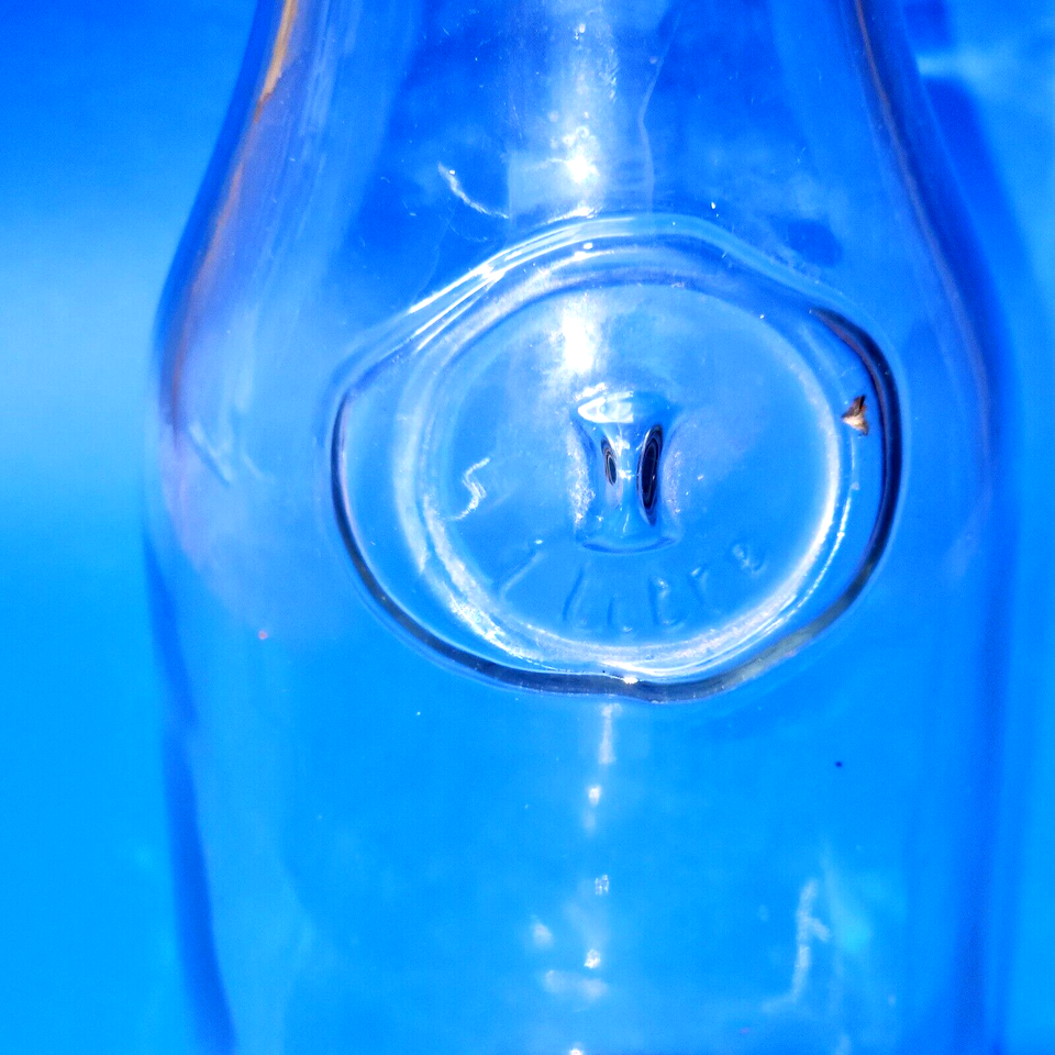 bottle) glass milk jug carafe in mint condition, no chips or cracks. Embossed