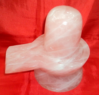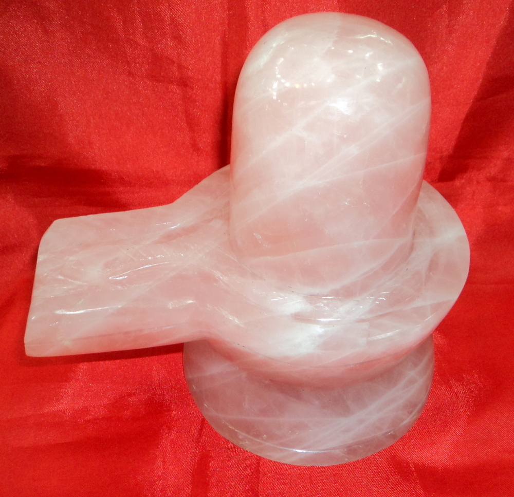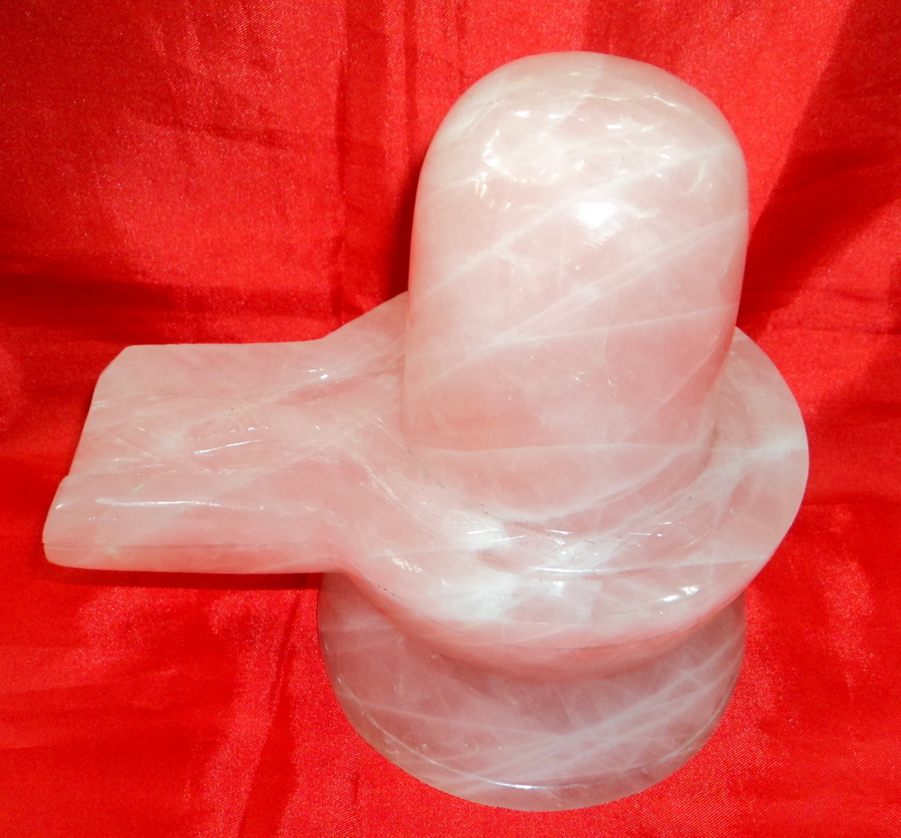 Shivlingam idol finely carved in Rose Quartz . Rose Quartz is a stone of love that helps open the heart and connect to the energy of love. It is rejuvenating to both the physical and emotional body and assists the worshipper in remaining present, calm and peaceful.
