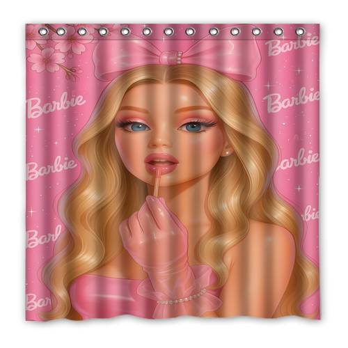 - Rare!!! Cute Barbie Custom Waterproof Polyester Shower Curtain 4 Size