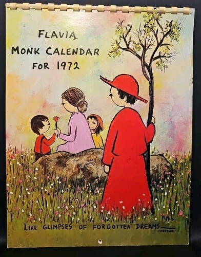 Rare Flavia Monk Calendar for 1972 Featuring Paintings by Artist Flavia Weedn