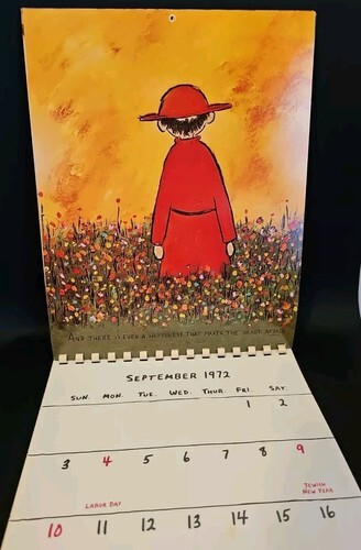 UP FOR SALE: FLAVIA MONK CALENDAR FOR 1972 / A Charming Calendar Featuring Paintings by the Well-Known Artist FLAVIA WEEDN. Produced by Buzza Cardozo Anaheim, California 12 AMAZING Paintings all with Quotes. Extremely Farmable --- An Amazing Find Flavia Weeden 1929 - 2015 Flavia Weedn began expressing her inspirational philosophy through painting and writings in early 1962. Her talent as an artist, as well as her great ability to express her work in writing with a sense of care and wonder, quickly spiraled her work into the public eye. Her career branched off into three genres: the fine arts, commercial illustration and the literary field. Flavia originals and original graphics have sold the world over to fine art collectors and can be found in the Smithsonian Institute archives, the AT T Collection and numerous private exhibits. Her work as a commercial illustrator has been reproduced on magazine covers, national advertising and non-profit promotions and hundreds of fine paper products and collectible gifts in the United States, Canada, throughout Europe, Australia and Japan. Her lines of greeting cards, translated into many different languages, are sent by over 18 million people each year, thus displaying the international appeal of her tender display of human emotion and her philosophy of hope. Weedn has published 10 collections of her writings and illustrations, which have garnered high critical acclaim. Her books are used in school systems and self-esteem programs throughout the world. Her public acclaim has brought editorial coverage in consumer publications such as Newsweek, People and Glamour and in newspapers such as The Wall Street Journal, the Chicago Tribune and the Los Angeles Times. She is also one of the chosen authors to include her work in the National Literacy Campaign introduced by Barbara Bush. Flavia WeednOs art deals with the simplicity and the beauty she sees in the ordinary things in life. It is her intention to emphasize the value of each individual and to help everyone be aware that he or she has a valuable contribution to make in this lifetime. PLEASE REFER TO ALL PHOTOS FOR A BETTER VISUAL DESCRIPTION OF THE ITEM *Vintage and secondhand items may have flaws. Please review item(s), description and picture(s). I do my best to research and describe the items accurately, but I am not an expert on all of the items I sell. Unless specified in the listing, all items are sold AS-IS AS-SEEN in photos* All of My Items Come from a Smoke Free Home and have been cleaned per's standards I do Ship everyday Monday - Saturday Feel Free to Visit My Store and Browse Through My Other Listings as I am happy to combine shipping for you. Please contact me with any issues prior to leaving negative/neutral feedback or low detail ratings, as I will always do my best to solve any problems that may come up! If you have any further questions, please feel free to message me Any props that are used in the taking of the photos are not included. Only the item/items in the title of the listings are being sold