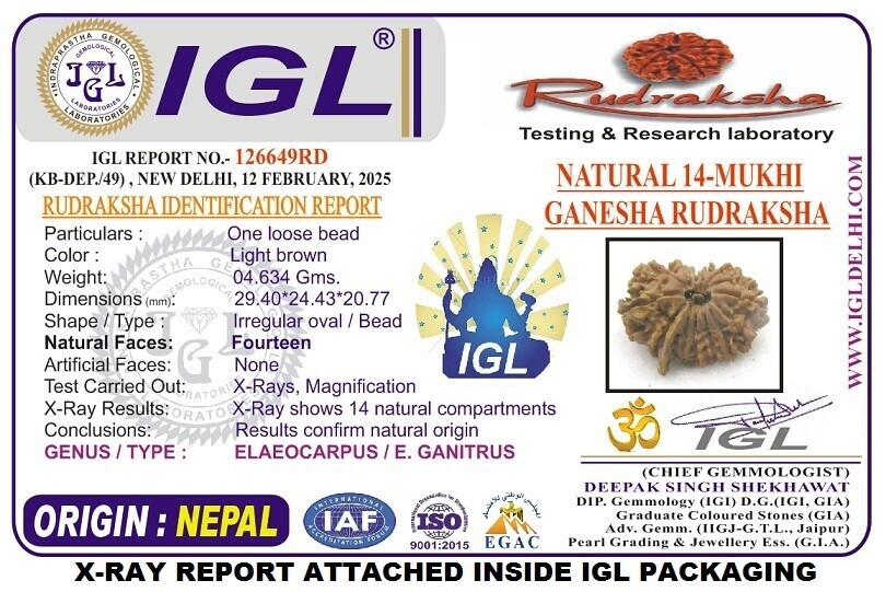 Rare Super Collector 14 Mukhi Ganesha Rudraksha - 29.40mm - Nepal-IGL certified
