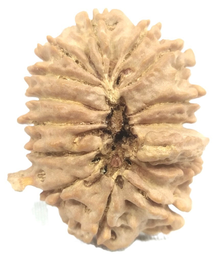 14 Mukhi Rudraksha is found most rarely and it pleases Lord Shiva to give the wearer His company. It is the most precious divine thing Deva Mani. It awakens the sixth sense organ by which the wearer foresees the future happenings. Its wearer never fails in his decisions. Its wearer gets rid of all the calamities, miseries, worries. It provides the wearer safety and riches. It is a very powerful antedote for Saturn miseries and provides miraculous cures to several ailments. It is recommended to be worn on chest as a necklace, on forehead on third eye region or on right arm. It helps in achieving moksha (salvation) from the world which is the essence of human life. The wearer of 14 mukhi rudraksha becomes divine and becomes dear to Lord Shiva.