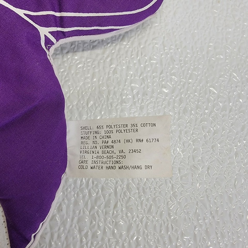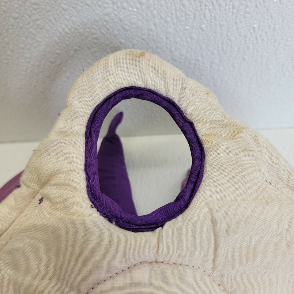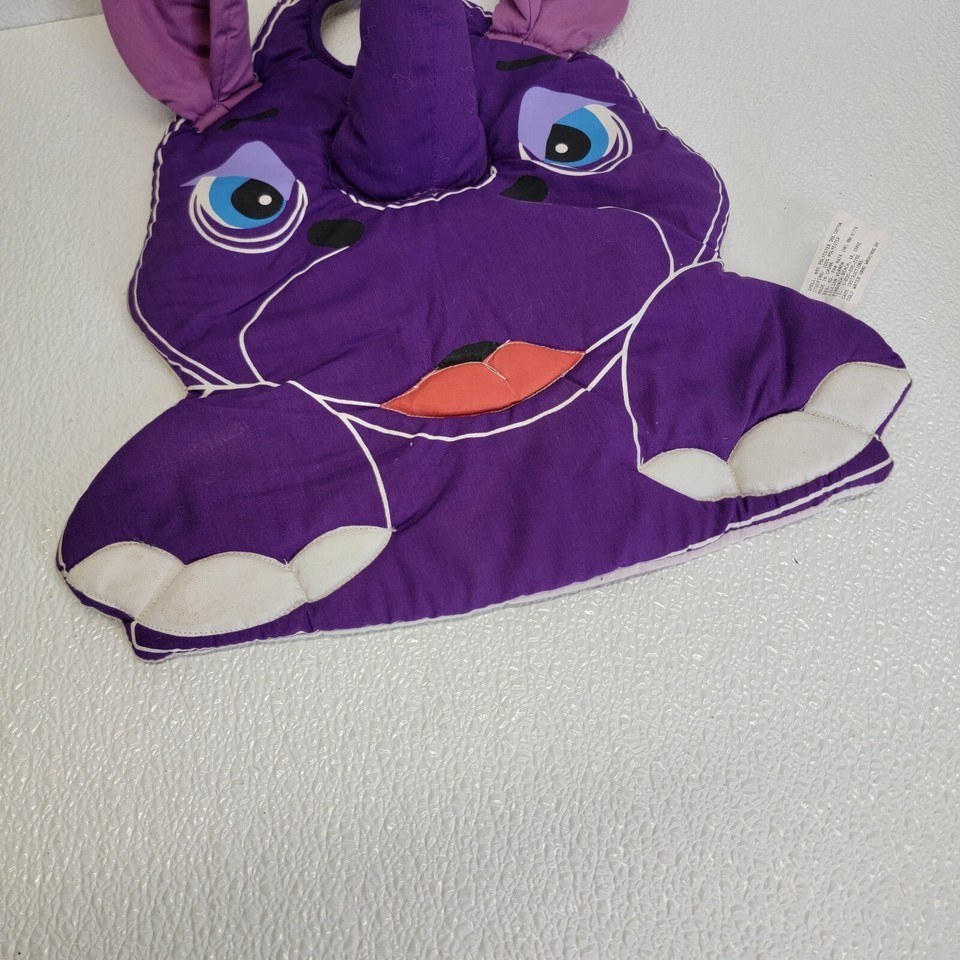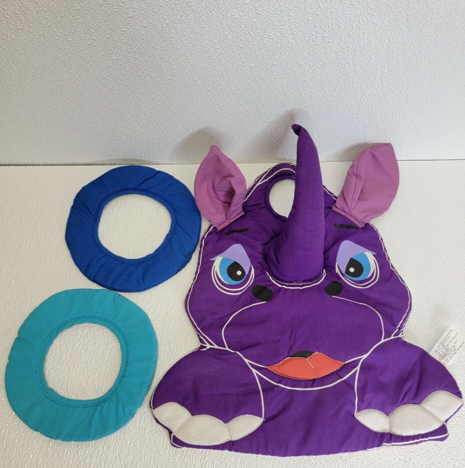 Rare Vintage Lillian Vernon Baby Kids Plush Purple Rhino Ring Toss Hanging Toy. Some light spots/stain as seen in images. Images show actual toy that will ship.