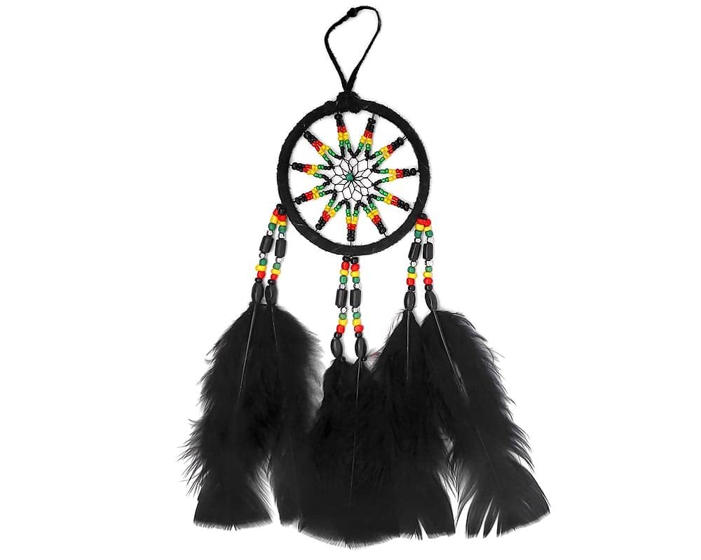 Rasta Dream Catcher Natural Feather Multicolored Beaded Dangle Hanging Ornament