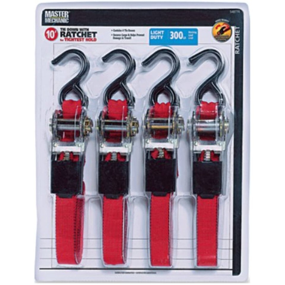 - Ratchet Tie-Downs, 1-In. x 10-Ft., 4-Pk.