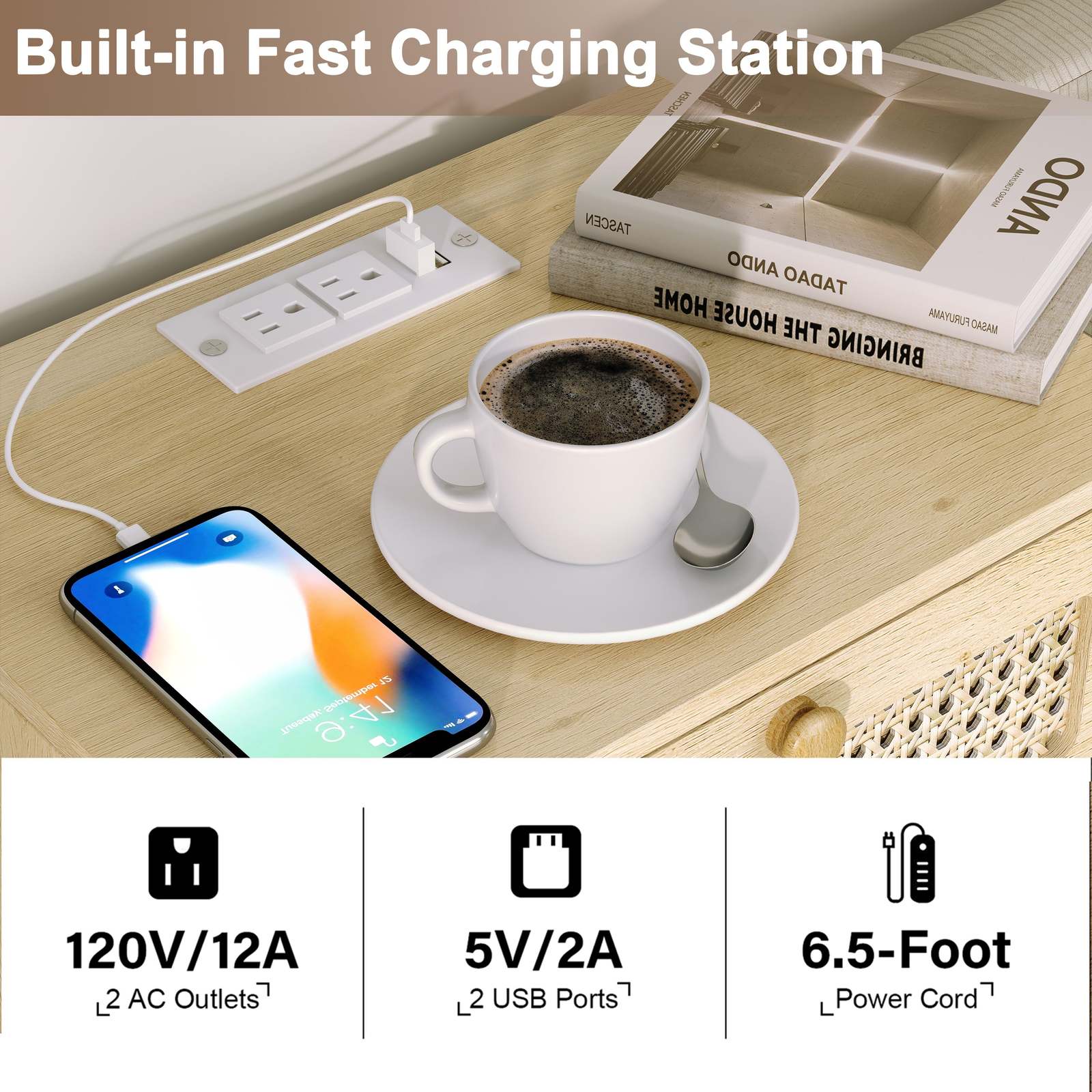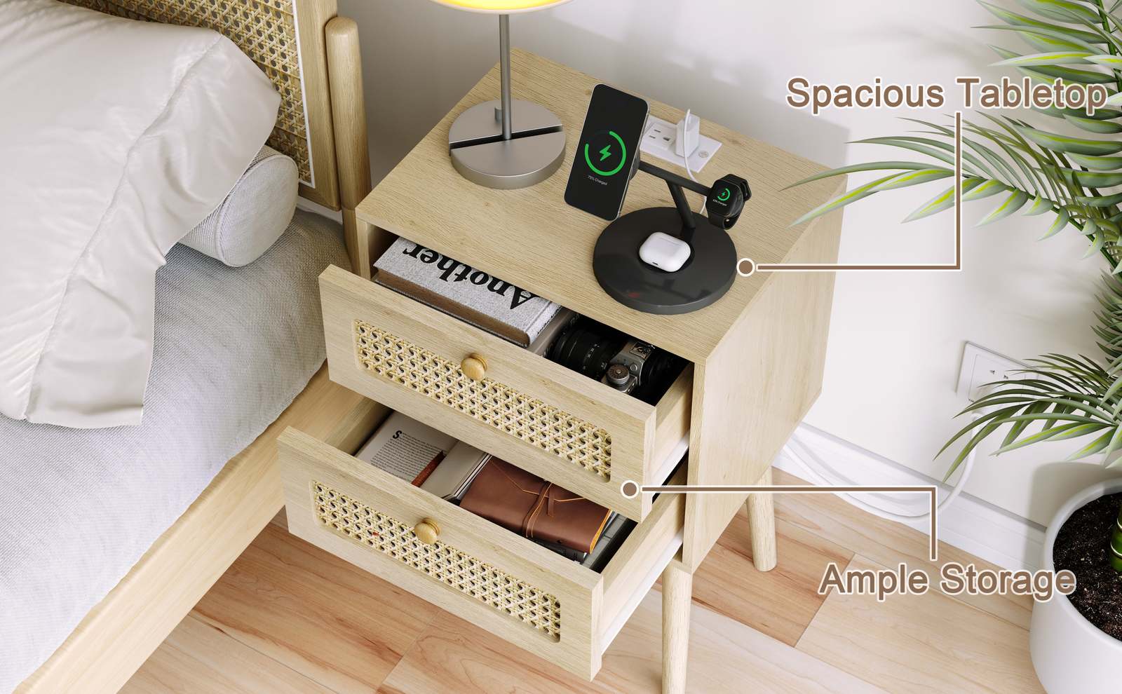 - Rattan 2-Drawer Nightstand | 15" Wide Bedroom Table