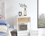 - Rattan End Table: Modern White Nightstand w/ Drawer
