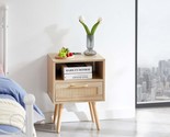 - Rattan End Table w/ Power & USB: Modern Nightstand