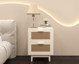 - Rattan Nightstand Wood End Table | Bedside Accent Table with Storage