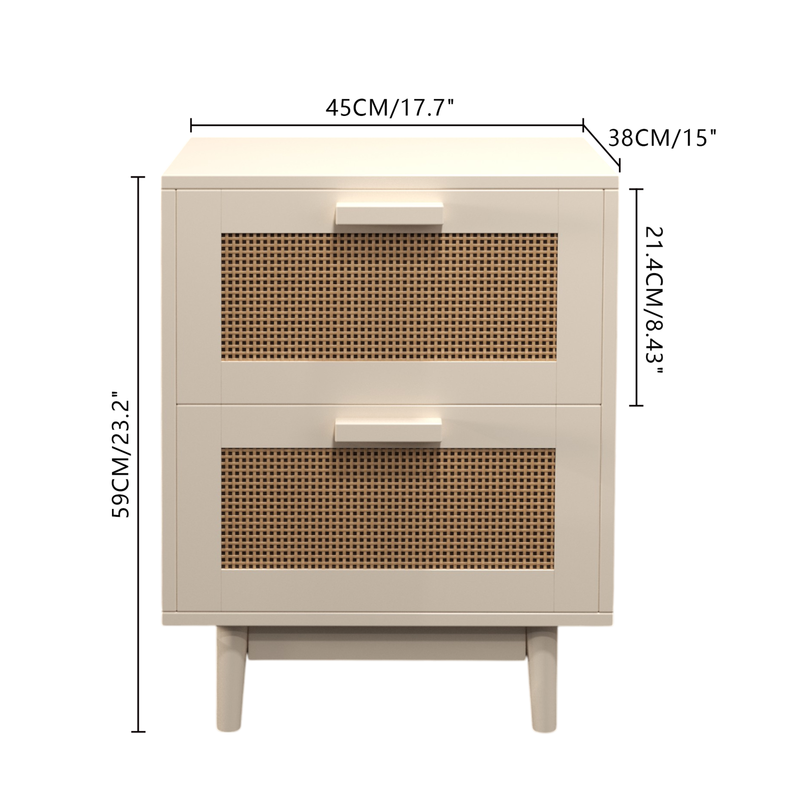 ?Extra Large Storage? SpaceThe rattan finish drawers combine beauty and practicality. The design, featuring two drawers and a wide tabletop, provides ample storage space for picture frames, alarm clocks, books, and daily necessities, keeping your bedroom or living room organized and tidy.