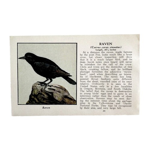 Raven Bird Print 1931 Blue Book Birds Of America Animal Corvids Art PCBG21D