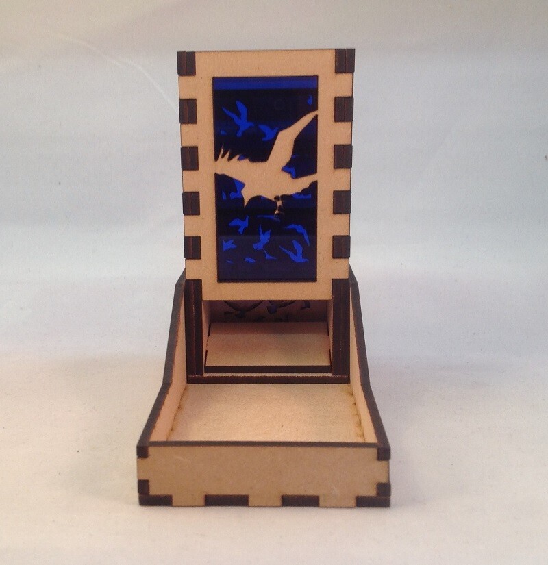 - Raven Dice Tower and Tray Dark Blue Acrylic Window COMPACT DESIGN Laser Cut MDF