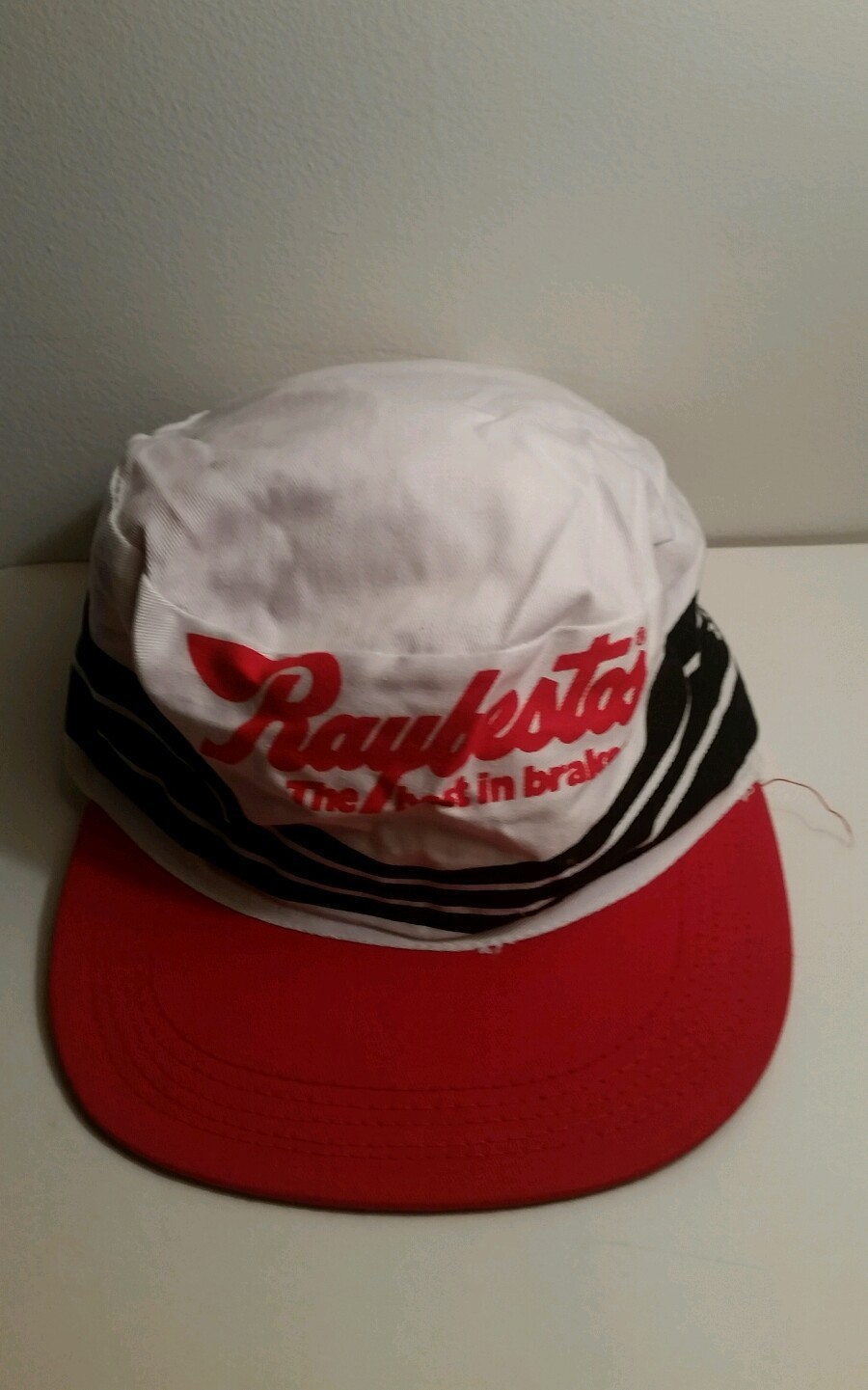 This is a vintage white and red Raybestos: The Best in Brakes hat. It has never been worn and is in new condition.