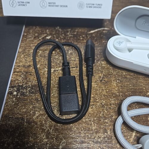 Experience crisp and clear sound quality, perfect for gaming or music. The earbuds come with a double earpiece and are made by the reputable brand Razer. These earbuds are perfect for anyone who wants a high-quality audio experience without sacrificing comfort.