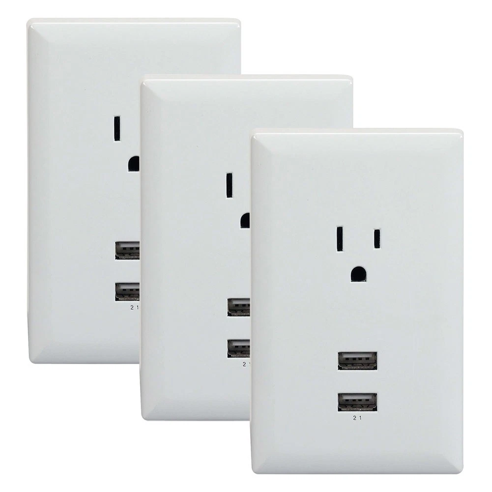 RCA Dual USB + Single Power Outlet Wall Adapter Plate WPW2UWR โ Qty(3)