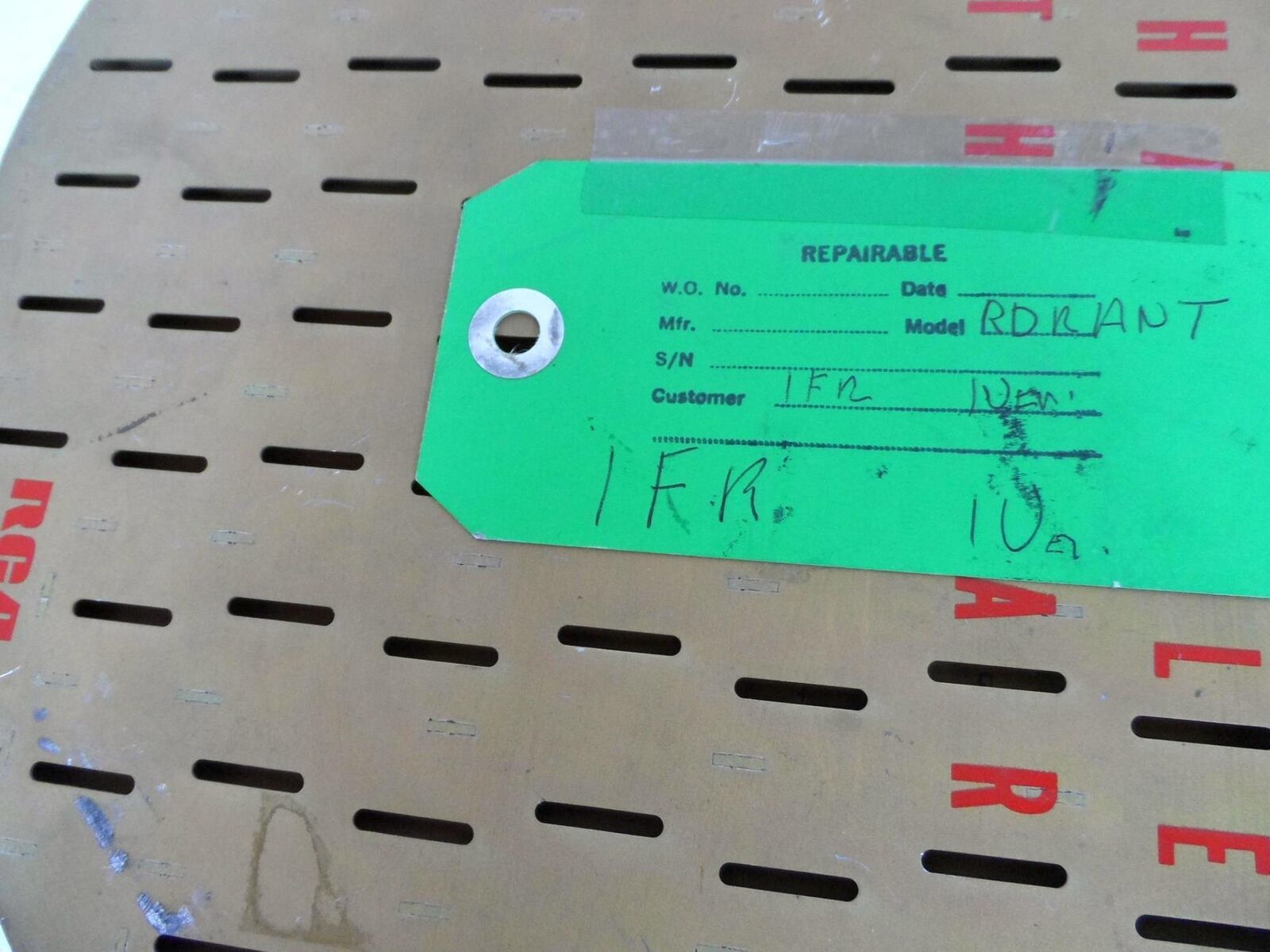 - RCA RDRANT 1719434-502 ANTENNA DISH AIRCRAFT PART, TAGGED "REPAIRABLE"