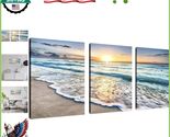 - Ready to Hang 3-Panel Blue Sea Sunset Canvas Art for Elegant Home Decor