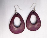 - REAL COCONUT SHELL FUN PURPLE COLOR TEAR DROP SHAPE DROPLET HOOP STYLE EARRINGS