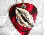 - REAL DEEP RED GUITAR PICK w ALLOY PAIR OF LIPS IN A KISS CHARM PENDANT NECKLACE