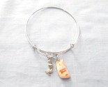 Real Seashell Shell Chip and Nautical Mermail on Silver Slide Bangle Bracelet