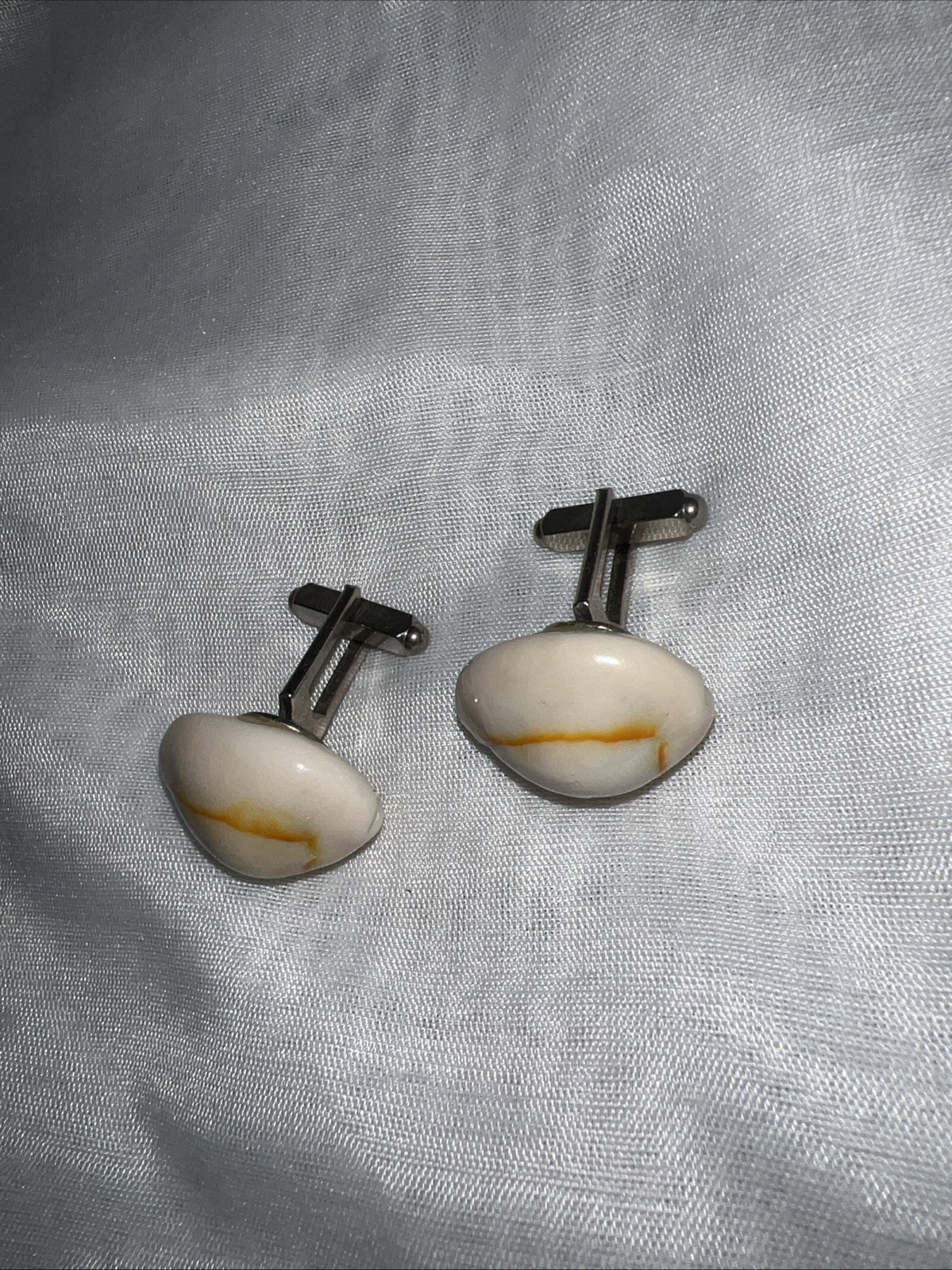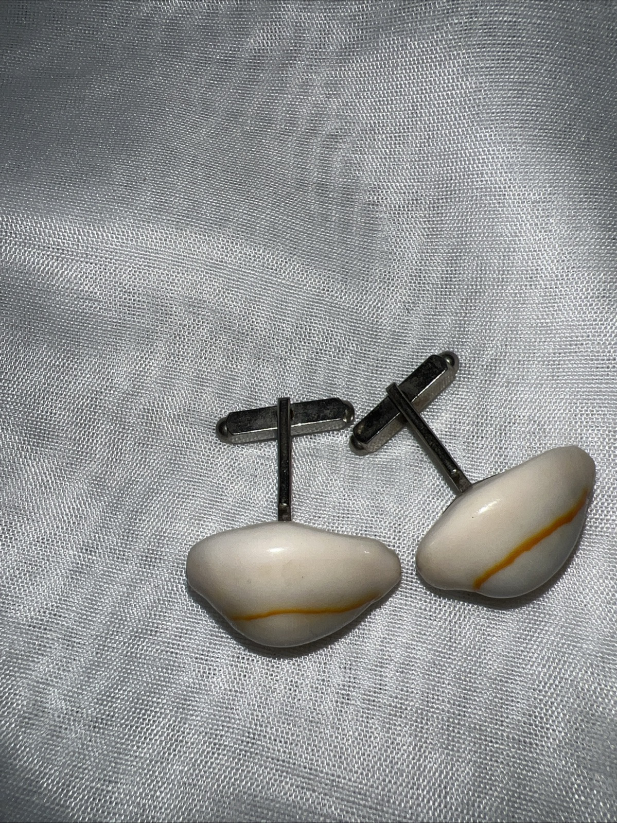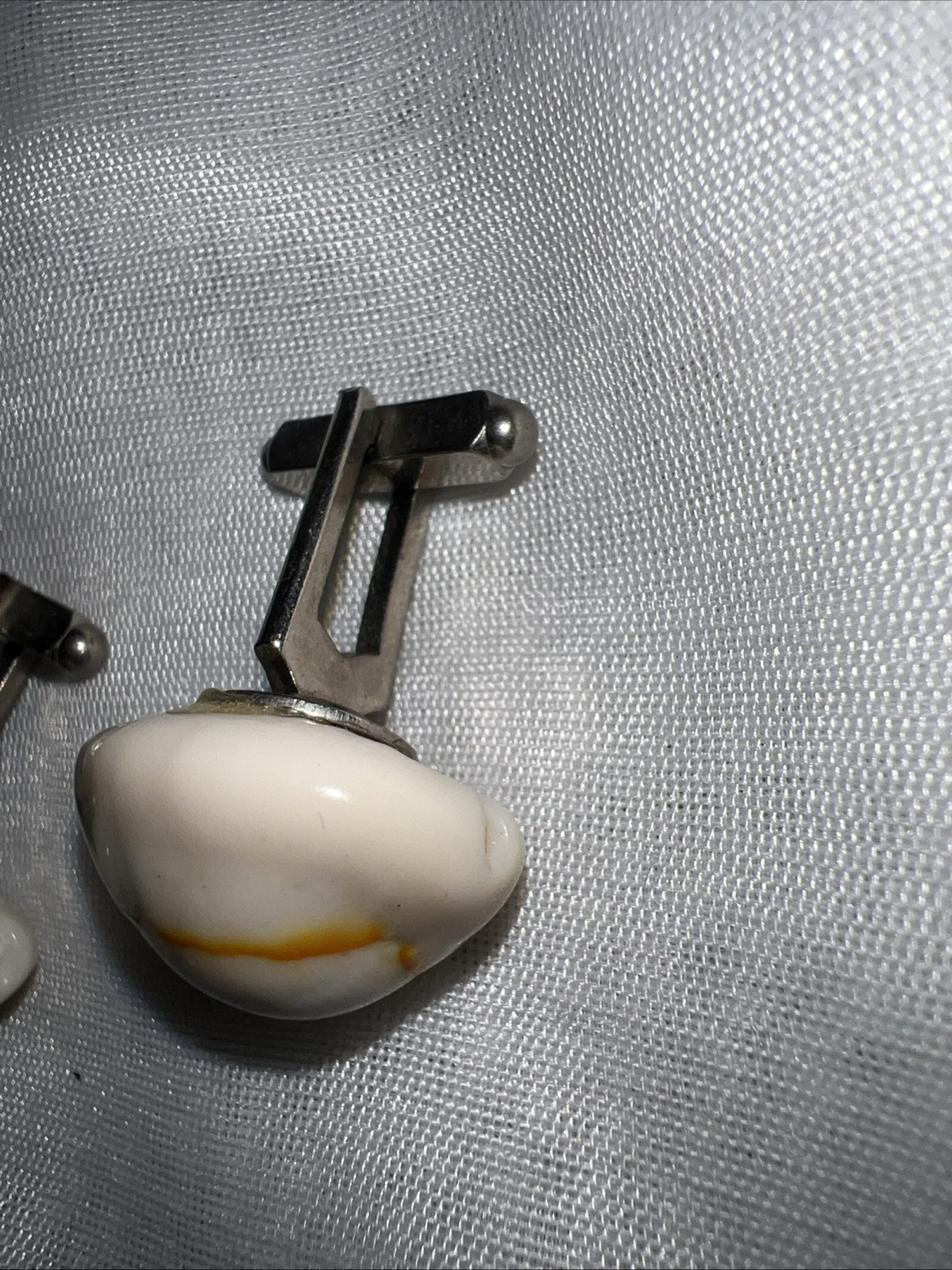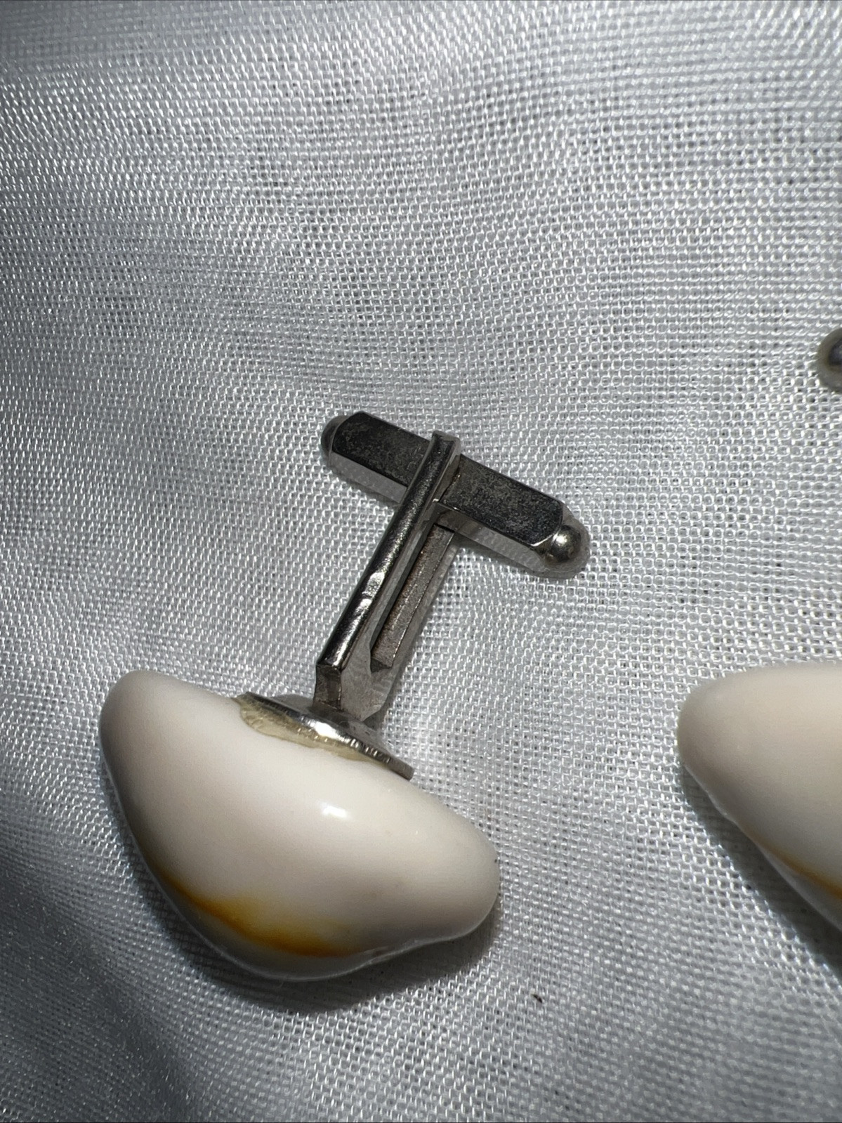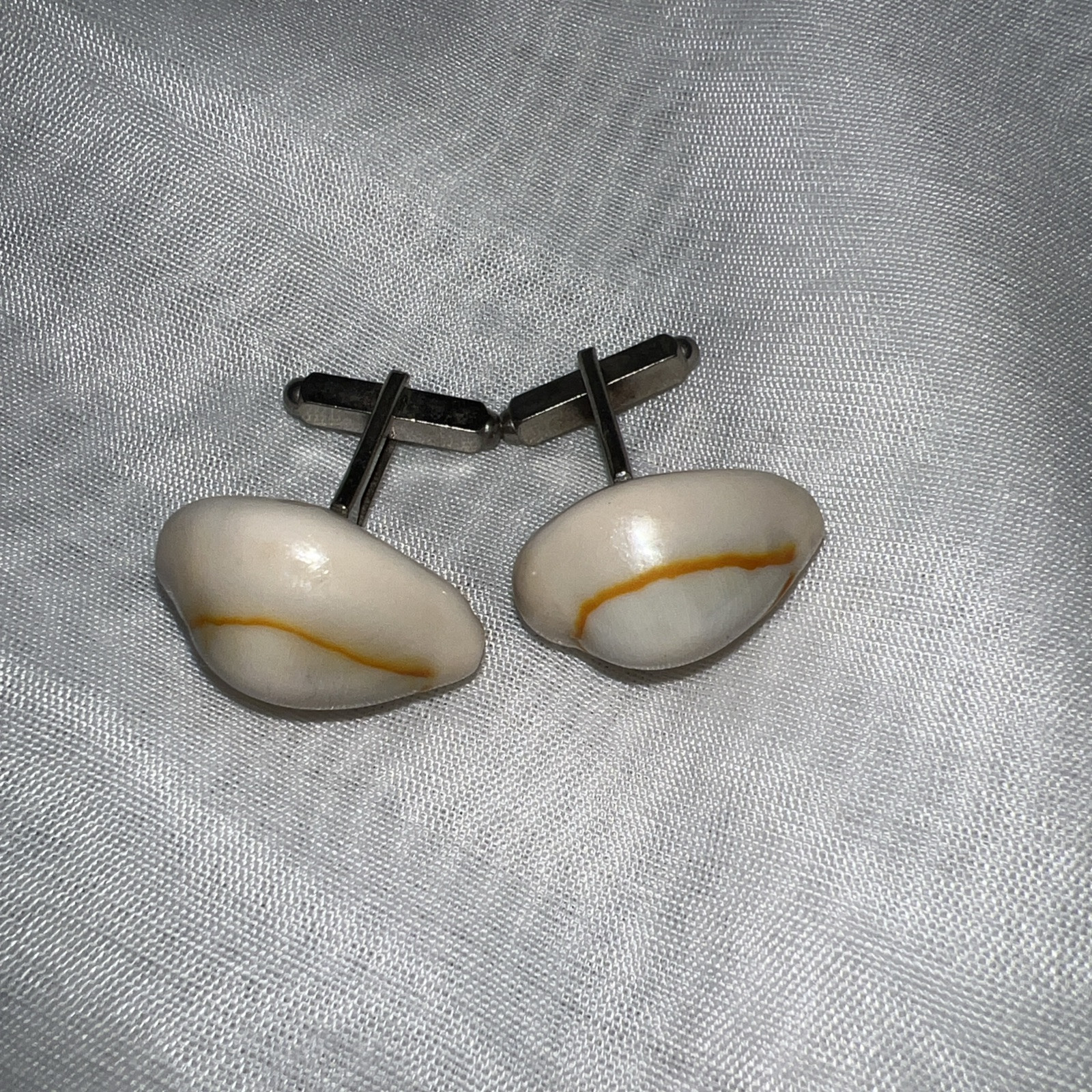 These cufflinks are crafted with real shell and silver metal, giving them a vintage look. Designed specifically for men, they add a touch of sophistication and style to any outfit. The use of real metal and shell in the construction of these cufflinks ensures durability and a unique aesthetic appeal, making them a standout accessory for formal occasions or everyday wear.