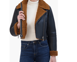 Rebecca Minkoff Faux Shearling Vegan Leather Moto Jacket, Black/Brown, Large NWT