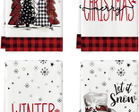 Red Black Buffalo Plaid Snowman Xmas Trees Christmas Kitchen Towels Dish Towels, 18X26 Inch Daily Seasonal Winter Decoration Hand Towels Set of 4