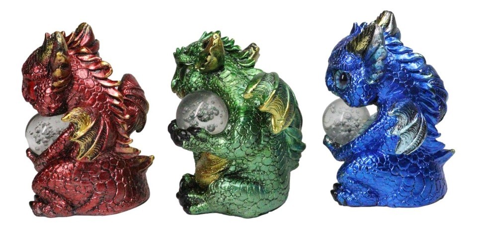 - Red Blue and Green Baby Dragon Hatchlings Holding LED Glass Spheres Figurines