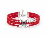 Red braided bracelet featuring a prominent infinity charm, along with a butterfly and 'love' charm. This casual accessory offers a touch of symbolic elegance for everyday wear. The durable braided design ensures comfortable wear. Perfect for gifting or adding a pop of color to your jewelry collection. 8? long with extender.