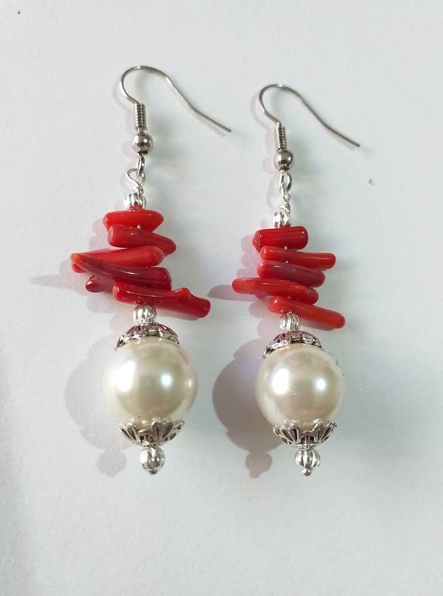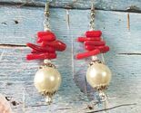 - Red Coral Pearl silver earrings Boho earrings Victorian earrings Bohemian Coral