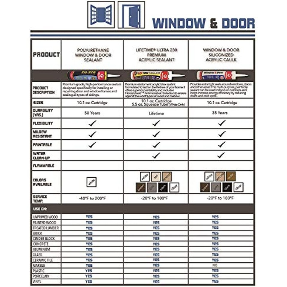 Lifetime Ultra 230 Premium Elastomeric Acrylic Latex Sealant is a high performance, multi-purpose sealant formulated to last for the lifetime of your home. This unique formulation provides the maximum level of durability on a variety of substrates indoors or outdoors. It offers excellent paintability and includes HomeShield Protection to guard against discoloration.