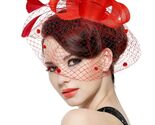Red Fascinator Hat with Mesh Veil Feathers ? Vintage Tea Party