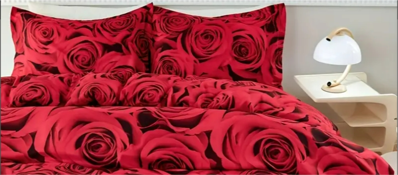 This Red Roses Duvet Cover set includes a single duvet cover and two pillowcases. The design features a pattern of roses in a rectangular shape with a red X character. The set is made from 100% polyester and is machine washable. The duvet cover has a zip closure and is 200 cm in length and 135 cm in width. This romantic and vintage-style set is ideal for adults and adds a touch of love and flowers to any bedroom.