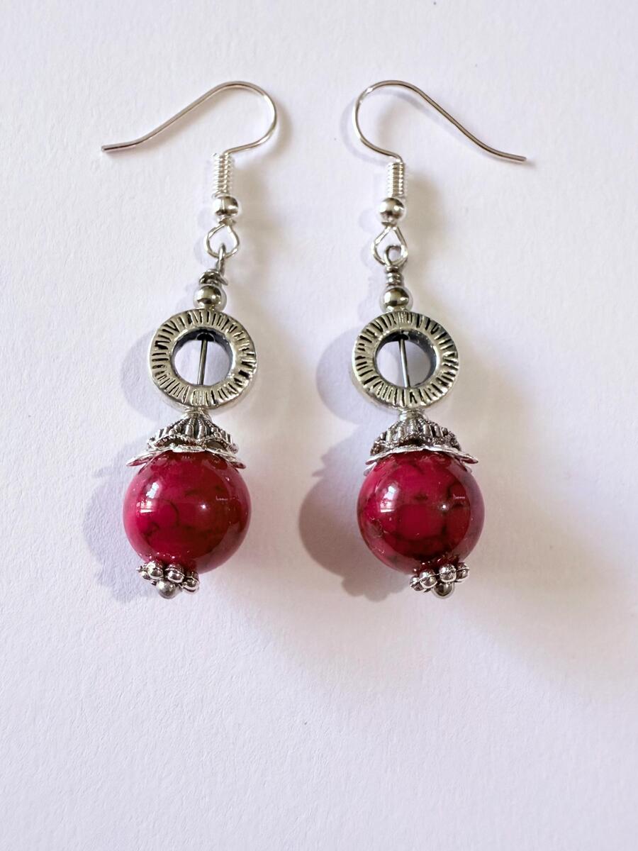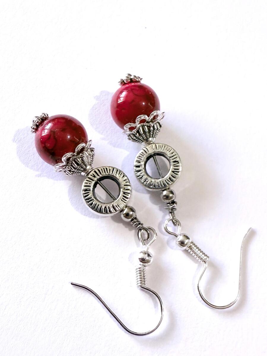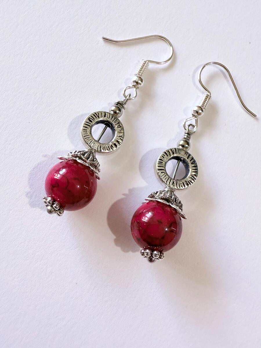 - Red Turquoise Silver earrings Victorian earrings Vintage Boho hammered earrings