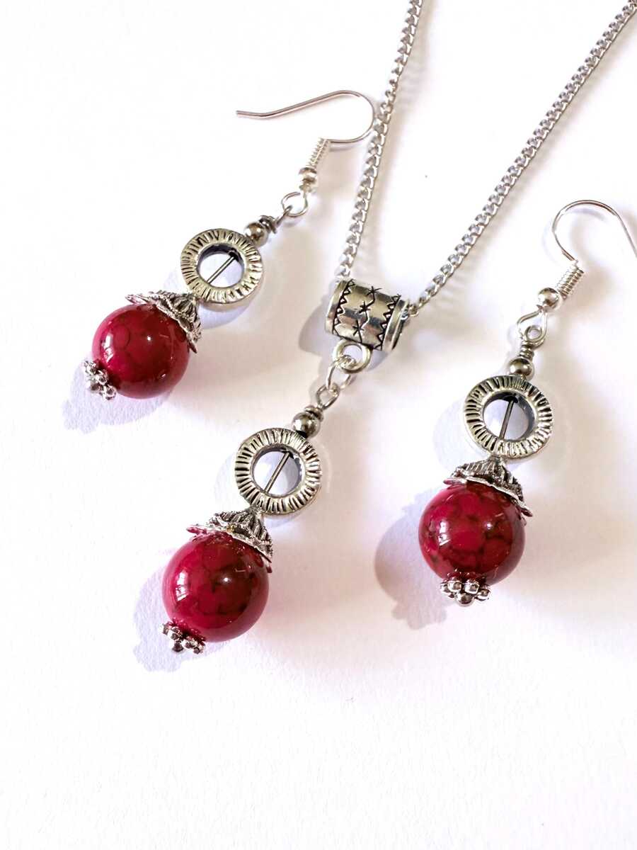 Beautiful Set of silver-tone Antique style rare red turquoise necklace and earrings. Silver-tone pendant Victorian style necklace and earrings. Boho necklace. Bohemian necklace and earrings. Romantic necklace and earrings.