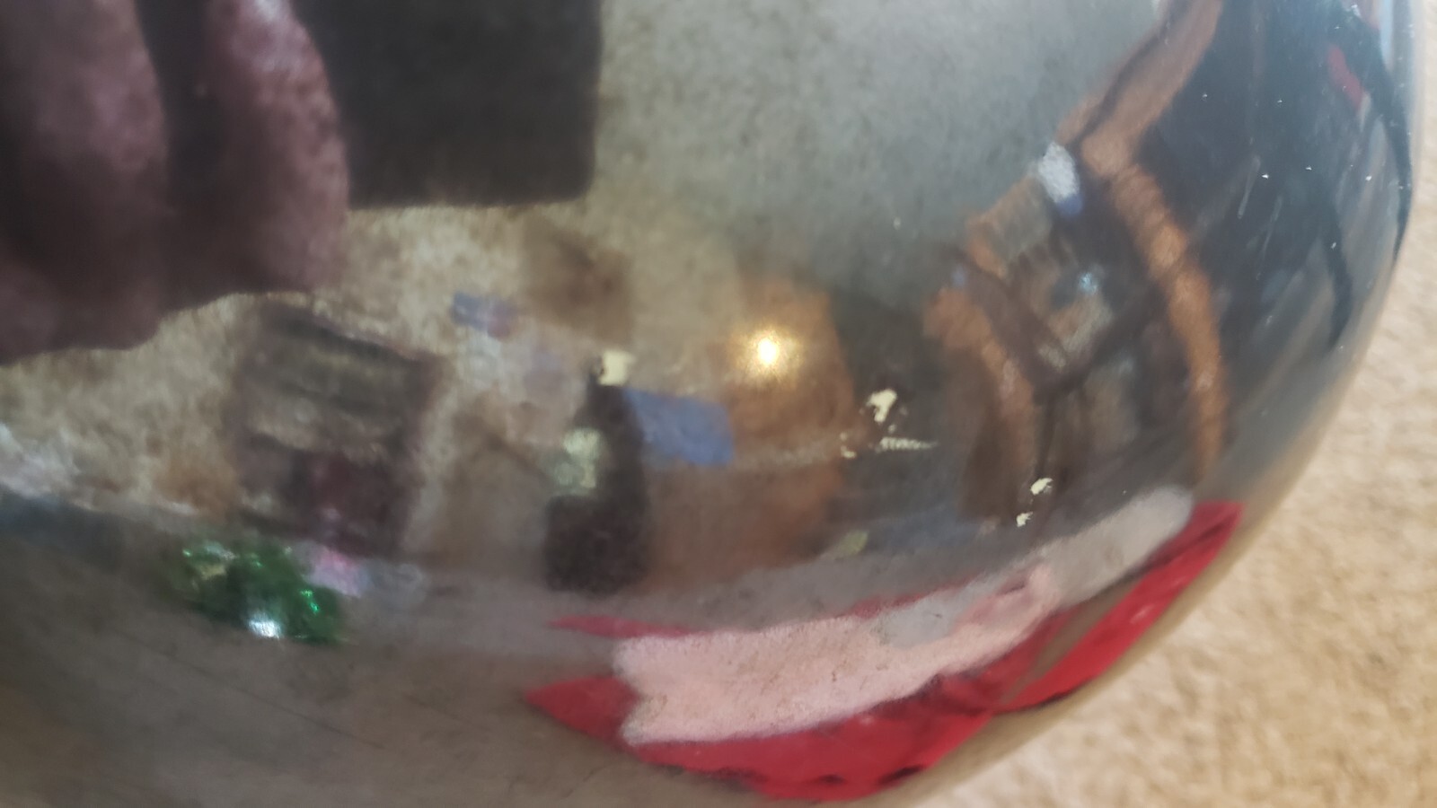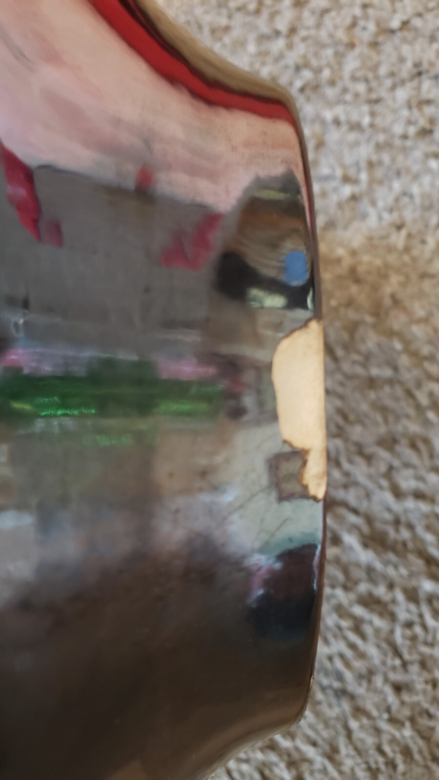 This has been repaired as the lip broke at some point (I got this at an estate sale). There is 1 inch chip on the base. There are small spots of white paint on the surface, but should be easily scrapped off. This is why I am selling for cheap. Looks like you cannot find this one anywhere