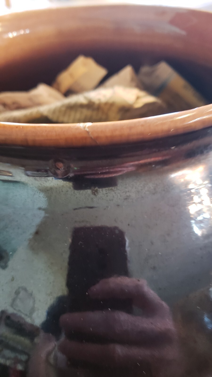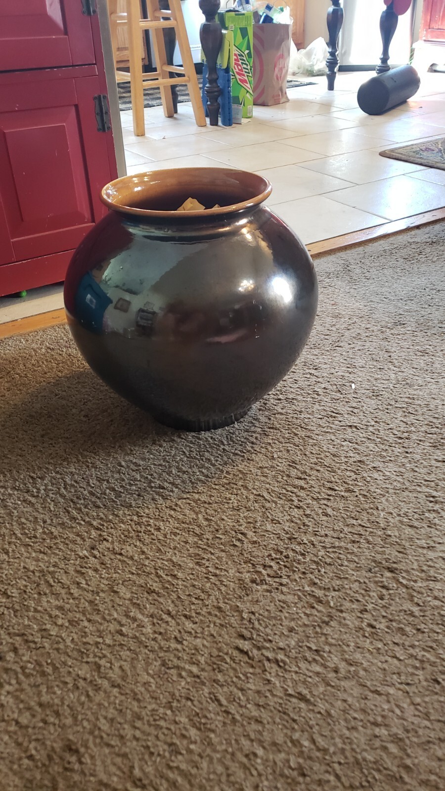 Red Wing # 918 Vase Largest Piece 1965 Bronze Line 12.5? Tall Brown (repaired) this is nice big vase - 12.5" High. 6-1/2" wide at the opening. This has been repaired as the lip broke at some point (I got this at an estate sale). There is 1 inch chip on the base. There are small spots of white paint on the surface, but should be easily scrapped off. This is why I am selling for cheap. Looks like you cannot find this one anywhere FREE SHIP