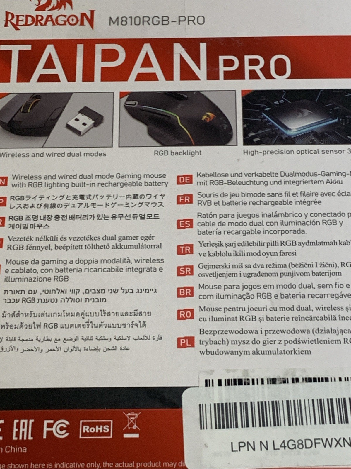 - Redragon Taipan Pro M810 Wireless Gaming Mouse, 10000 DPI Wired/Wireless