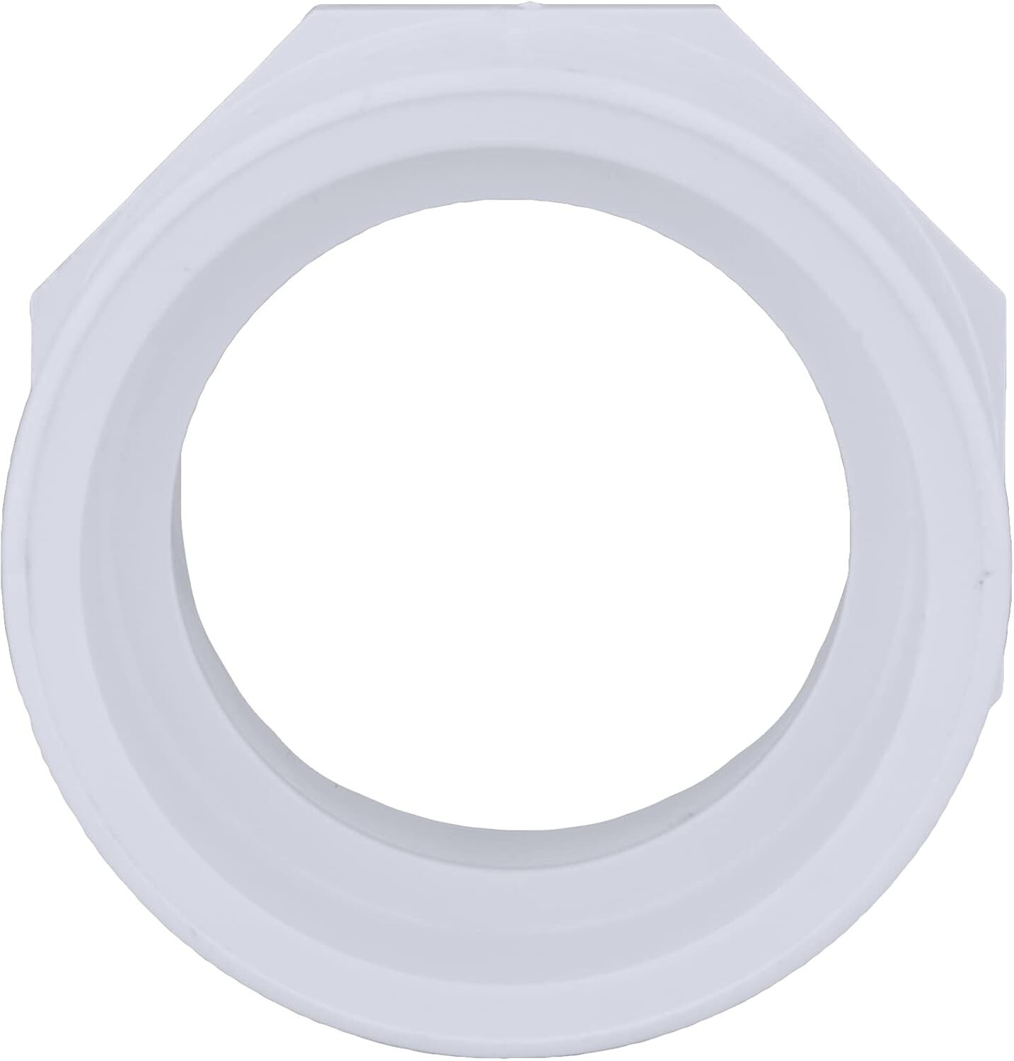 This reducing bushing is used by plumbers, irrigation installers, and DIYers in pressurized PVC piping systems where a transition from 4-inch solvent-weld pipe to a 3-inch threaded component?such as a valve, adapter, or pump?is required. Commonly installed in residential cold water lines, landscape irrigation manifolds, and swimming pool equipment pads, it ensures a secure, leak-free connection when properly cemented. Its pressure-rated design and potable water certification make it suitable for indoor and outdoor above-ground applications, though not rated for direct burial. The fitting?s reliability, code compliance, and American manufacturing provide confidence in systems where safety, longevity, and water quality are essential.