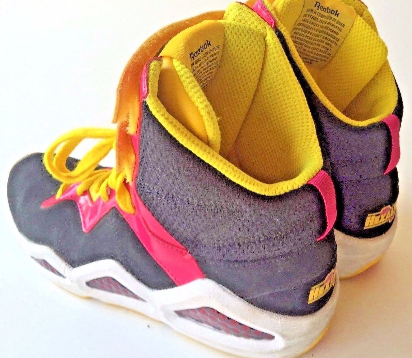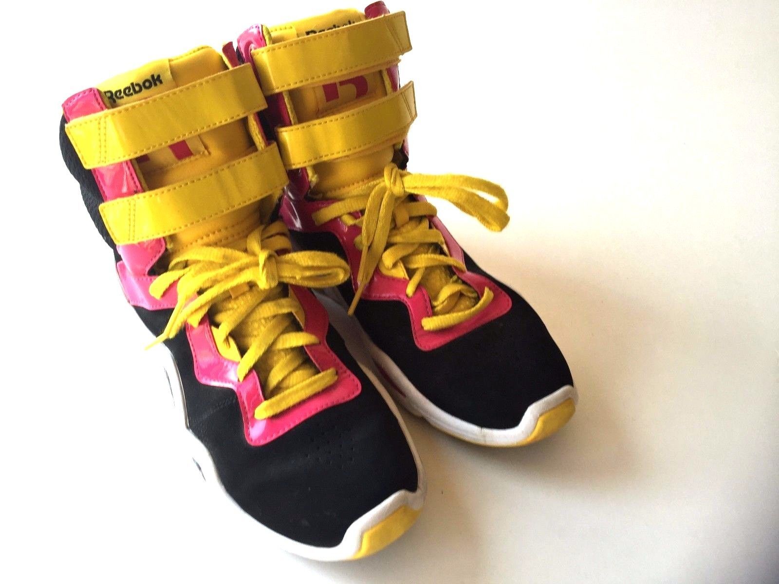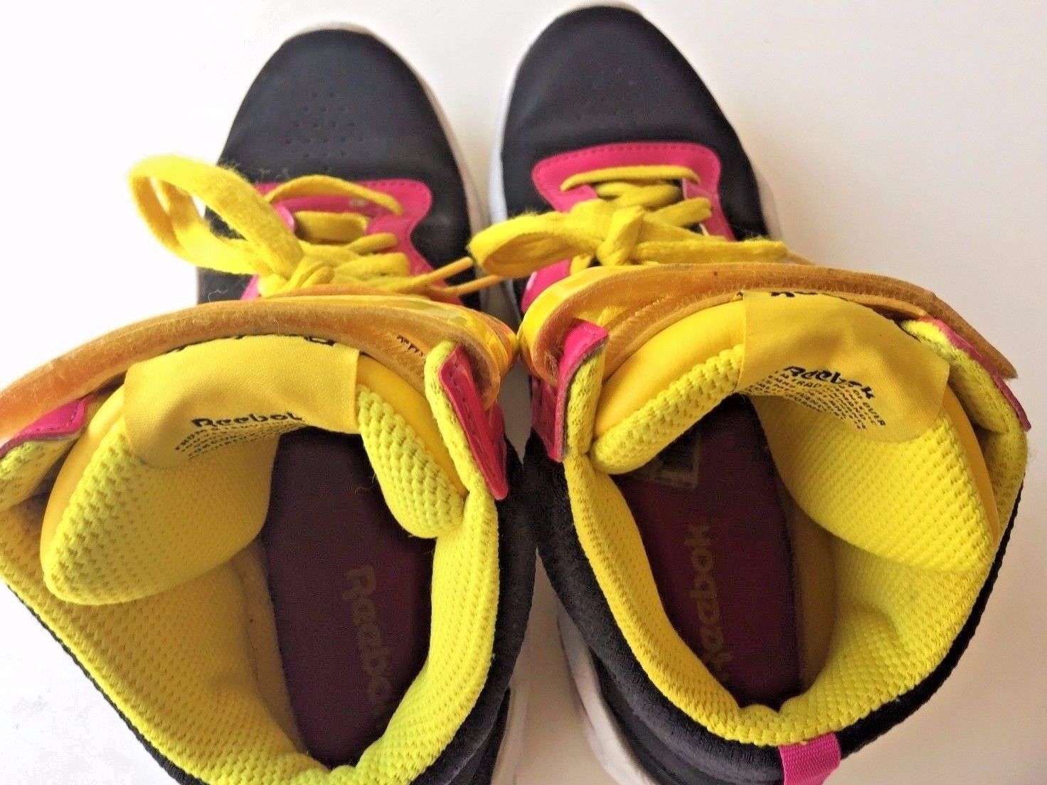 Reebok Classic Chi-Kaze HexaLite athletic high tops, women's US 9.5, UK 7, EUR 40.5, CM 26.5, mm 265, made in Vietnam. Great quality, minimal use, top notch condition. Lace up and 2 velcro strap closure. Cool fashion hi tops. Black pink and yellow colors. See more unique items at our store BARGAIN SEEKERS INTERNATIONAL ONE STOP SHOPPING FOR ALL International Buyers ? Please Note: Import duties, taxes and charges (typically collected upon delivery or pick-up) are the buyer's responsibility and not included in the item price or shipping charges. Please check with your country?s customs office prior to bidding/buying to determine what these additional costs will be.