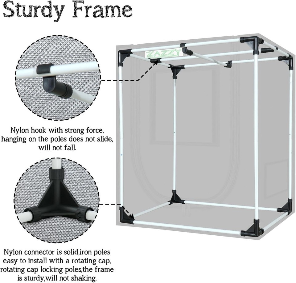 Heavy-duty all-steel poles rated to support at least 110 lbs, offering a reliable framework for your indoor garden.